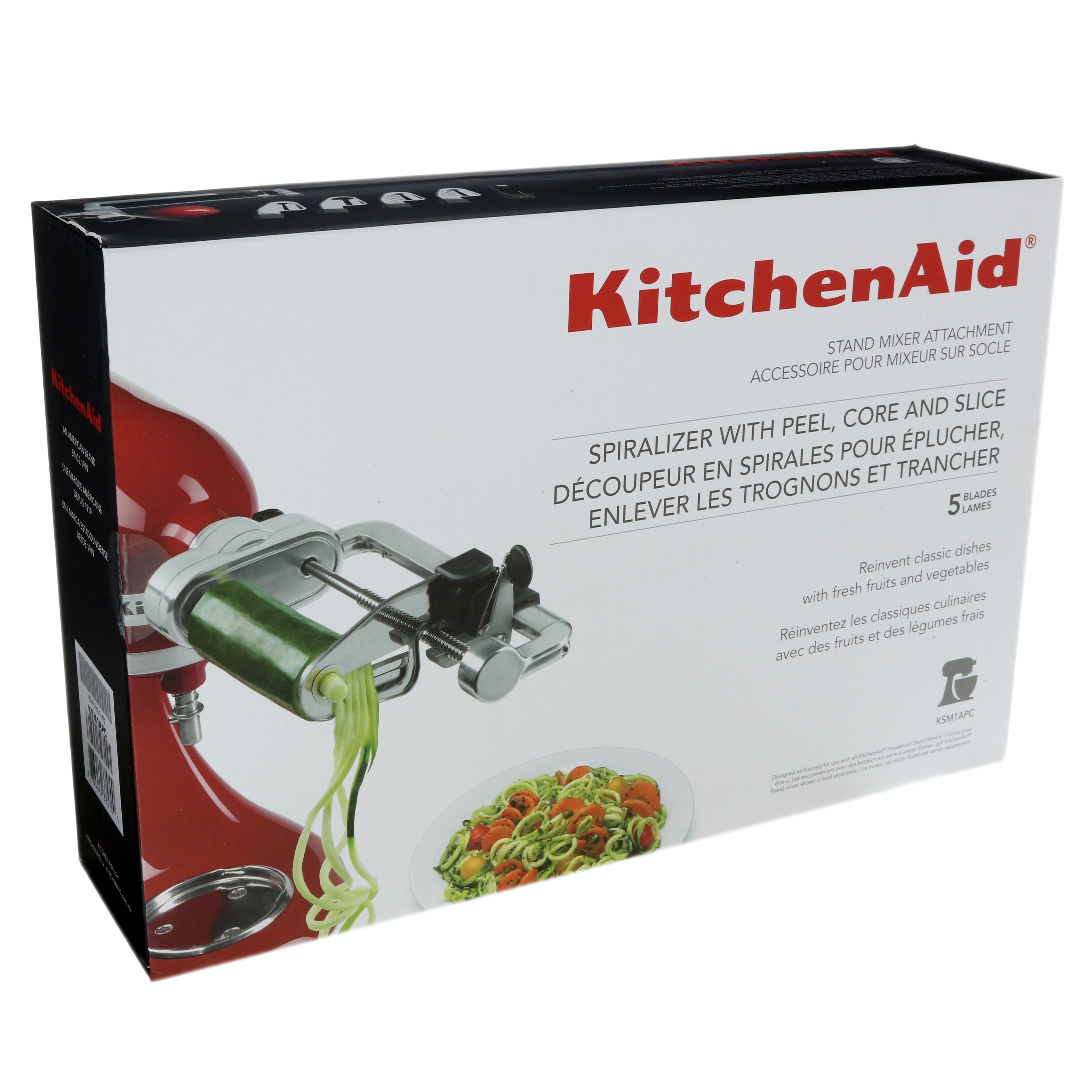 KitchenAid® 5Blade Spiralizer with Peel, Core, and Slice Stand Mixer Attachment. 2974 Reviews. Write Review. $99.99..The versatile KitchenAid Spiralizer with Peel, Core and Slice Stand Mixer Attachment with 5 blades is perfect for fresh fruit and vegetable recipes, from zucchini .The versatile KitchenAid® Spiralizer Plus with Peel, Core and Slice Stand Mixer Attachment comes with 4 Spiralizing/Slicing Blades and a Peeling Blade, perfect .I couldn't be happier with this attachment! ✓ Yes,; I recommend this product. kitchenaid.com..Free shipping on orders of $35+ from Target. Read reviews and buy KitchenAid Spiralizer Attachment with Peel, Core and Slice KSM1APC at Target..CORE PEEL SLICE. Reinvent classic meals and inspire your culinary creativity with the versatile KitchenAid Spiralizer with Peel, Core and Slice Stand Mixer .The versatile KitchenAid® Spiralizer Plus with Peel, Core and Slice Stand Mixer Attachment comes with 6 Spiralizing/Slicing Blades and a Peeling Blade, perfect for fresh fruit and vegetable recipes. From zucchini noodles to sweet and savory dishes, the options are endless. Read More Read Less.